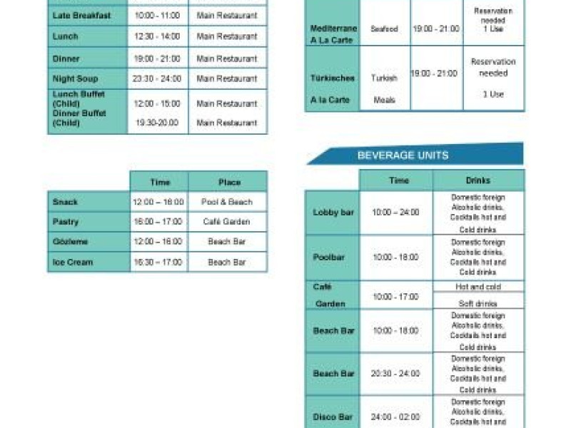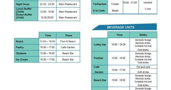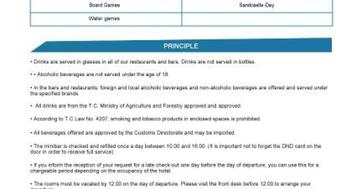 Alte informatii:in restaurante tinuta este obligatorie;in functie de conditiile meteorologice, programul de functionare a restaurantelor si barurilor se poate modifica; nu accepta animale de companie;hotelul isi rezerva dreptul de a modifica conceptul in timpul sezonului fara a anunta in prealabil aceste modificari.