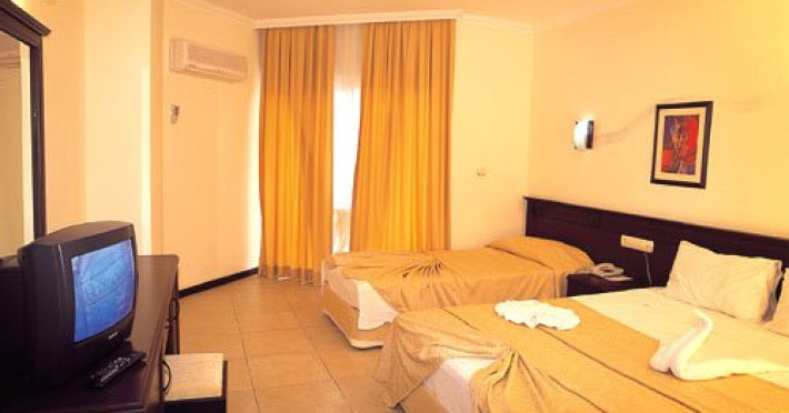 Hotelul dispune de 140 camere, repartizate astfel: - 136 standard room - 4 suite room cu 2 camere (hol, dormitor cu usa, jacuzzi, 2 TV, max. 5 pers., 60 mp). Localizare: peste drum de mare, in localitatea Beldibi, la 13 km de orasul Kemer si la 40 km de aeroportul Antalya. Dotari camere: televizor, telefon, aer conditionat centralizat, minibar, baie, dus, uscator de par, seif, balcon, gresie/mocheta. Facilitati hotel: 2 restaurante (unul in interior si altul in exterior), 3 baruri, 2 piscine exterioare, 2 tobogane cu apa, sauna, baie turceasca, fitness, aerobic, tenis de masa, darts, muzica live, program de animatie, discoteca, parcare, schimb valutar. Contra cost: masaj, sporturi acvatice, cabinet medical, magazin, spalatorie, rent-a-car. Plaja cu pietris. Bar pe plaja. Umbrelele, sezlongurile si saltelele sunt gratuite. Alte informatii: - in restaurante tinuta este obligatorie. Hotelul isi rezerva dreptul de a modifica conceptul in timpul sezonului fara a anunta in prealabil aceste modificariDatorita dinamicitatii domeniului disponibilitatea ofertelor se modifica de la un moment la altul. De aceea ofertele sunt valabile in limita locurilor disponibile. Agentia nu este responsabila pentru eventualele neconcordante care pot aparea intre informatiile privind tarifele si alte detalii din site si informatiile primite in agentie. In aceste cazuri vor avea prioritate, intotdeauna, informatiile primite in agentie.