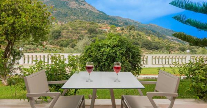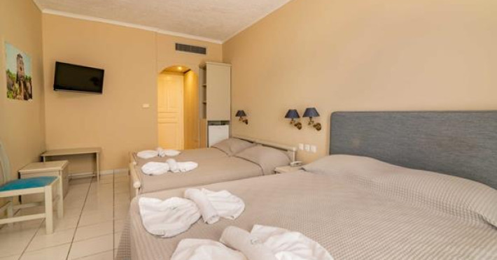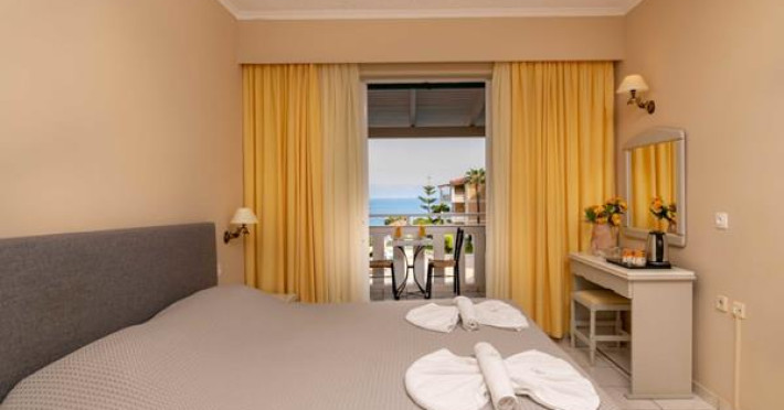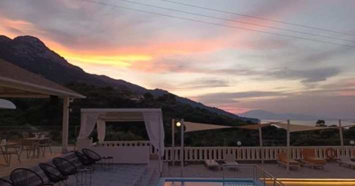 The rooms of MATILDA hotel are both luxurious and aesthetic in their simplicity, offering a breathtaking view over the sea and the surrounding mountains. Our Hotel has fifty-three (53) rooms and consists of two buildings of traditional Ionian Islands architecture which are linked by a tile rooted passageway. The rooms are all equipped with: Air-condition , Central heating, Telephone, Satelite TV Refrigerator and Private bath or shower Hotel Services & Facilities: Two swimming pools (Adult & Childern) , Sun terrace with sun beds and umbrellas , Children's playground, Safety deposits, Pool bar, Indoor bar, Dining room serving, traditional and international dishes, Lounge , Buffet and waiter service, Room service, Doctor on call ,Car park , Taxi service. Car & Bike Rental , Post, Parking , Safe deposits , Banking & Secretarial Services , Laundry service, Baby sitting upon request, Reception lounge with satellite TV. Breakfast in the dining room of Matilda Hotel, is offered in a rich varied buffet, ensuring the beginning of our guests' day with a happy feeling, generated by the traditional "philoxenia" of the hotel staff. The snack- bar is situated just next to the swimming pool and is considered to be the perfect complement to an idyllic setting. The hotel staff of the snack-bar is being continuously at guest's service in order to offer a drink or a snack while he enjoys the hot summers and the majestic sunsets. As far as entertainment is concerned, our Hotel offers Greek nights with folklore shows and barbeque nights every week.Full description