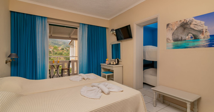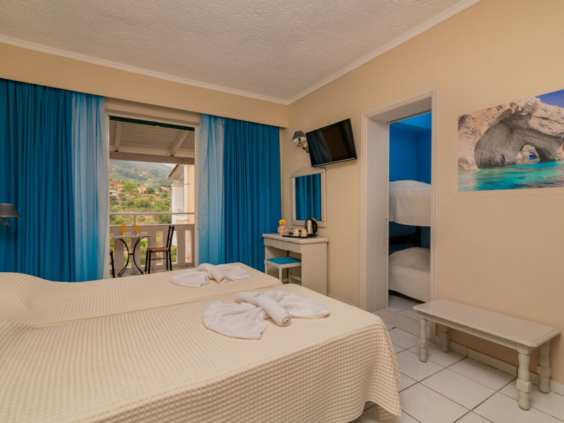 MATILDA 4* is a traditional, ecologically sensitive hotel situated in the most beautiful area of Zakynthos Island, Vassilikos village, the marine park habitat of the sea turtle Caretta-Caretta, 7 km only from the city of Zakynthos and near the airport, over the picturesque beach of Porto Azzuro. MATILDA HOTEL 4* is a balcony over the Ionian Sea, a place where one may sunbathe in the midst of the green-clad landscape of Zakynthos. Our architects, engineers and ourselves have worked hard to build spaces comfortable for our guests, with first class service and Hospitality which is synonymous to the Hellenic concept of “PHILOXENIA” – the precious legacy from our ancient ancestors. Porto Azzuro, Gerakas, Saint Nikolas, Daphne, and Porto Roma are just a few of the numerous magnificent beaches nearby.Datorita dinamicitatii domeniului disponibilitatea ofertelor se modifica de la un moment la altul. De aceea ofertele sunt valabile in limita locurilor disponibile. Agentia nu este responsabila pentru eventualele neconcordante care pot aparea intre informatiile privind tarifele si alte detalii din site si informatiile primite in agentie. In aceste cazuri vor avea prioritate, intotdeauna, informatiile primite in agentie.