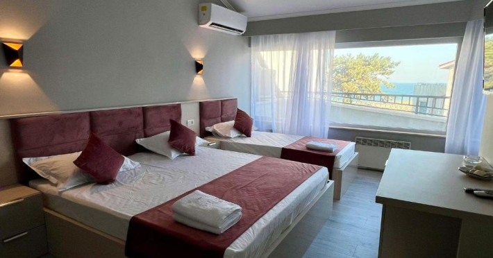 *Plaja este la 50 de metri , cu acces facil, avand sezlonguri si beach baruri.