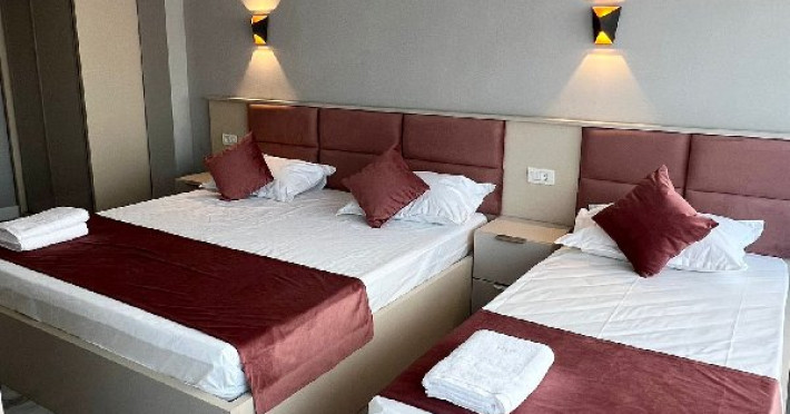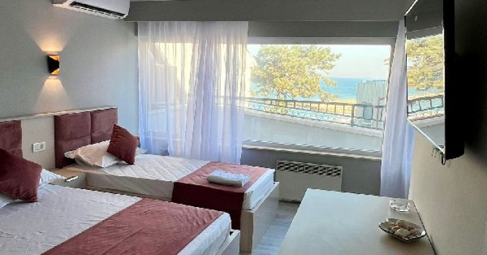 Camera Tripla cu Terasa- Vedere Frontala spre Mare: capacitate maxima- 3 adulti si 1 copil 0- 7 ani sau 2 adulti si 2 copii: 1 copil 8- 17 ani + 1 copil 0- 7 ani