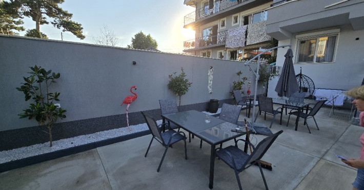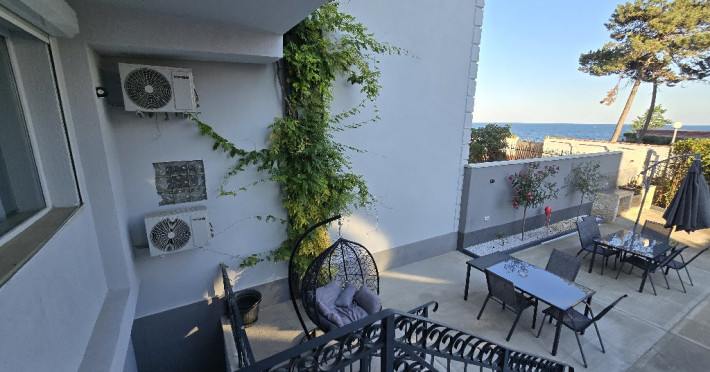 Apartament cu 2 dormitoare, Terasa- Vedere Frontala spre Mare: capacitate maxima- 6 adulti si 2 copii 0- 7 ani