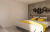 Apartamentele cu doua camere se afla situate la etajele 1 si 2, au vedere partiala la mare si sunt compuse din doua dormitoare matrimoniale (separate cu usa), baie si balcon. Suprafata 50 mp.