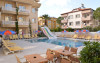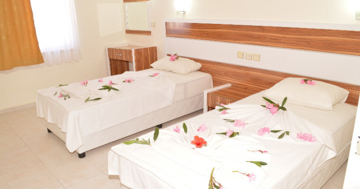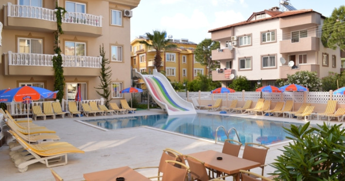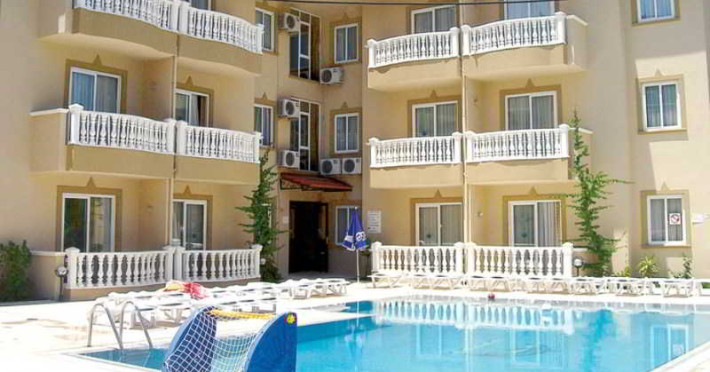 Renovated in 2006, this apartment hotel enjoys a central location, and the resort centre is within easy reach. It comprises a total of 25 apartments spread over 4 floors. Facilities on offer to guests at this air-conditioned establishment include a lobby area with a 24-hour reception and 24-hour check-in/check out service, a hotel safe, a currency exchange facility, a cloakroom, a bar and a pub. A games rooms, TV lounge, restaurant and WLAN/Internet access (charges may apply) are also available. Guests may also take advantage of the room and laundry services (charges apply) and there are bicycles available for hire. The younger guests may enjoy the kids club and a childrens playground..This apartment hotel is located just 100 m from the nearest restaurants, 300 m from the nearest nightspots and close to the setting of the Thursday market. It is about 400 m from Tansas, which is a local landmark, and the sandy beach is 700 m away. The hotel is close to all resort facilities and the bus station is just 1 km from the apartments. Mugla is a 45-minute drive away and it is 90 km to Dalaman Airport..All rooms offer a separate bedroom and comprise a lounge, a kitchenette area with a cooking ring, cooking utensils and a fridge. They are also equipped with individually adjustable air conditioning (payable on site) and come with a private bathroom with a shower and a balcony or terrace. Furthermore, a hairdryer, a direct dial telephone, tea and coffee making facilities and a double bed are provided in all accommodation as standard..The hotel serves a variety of food from breakfast to late night snacks, including Turkish and international dishes..This apartment hotel features a spacious outdoor swimming pool area with a childrens section and bar service. Guests can relax around the pool on the sun terrace with its sun loungers and parasols. There is a daily programme of events on offer to guests, varying from water volleyball to handball, as well as a pool table free of charge and a separate programme of activities for children. It is also possible to explore the area on a bicycle/mountain bike (charges apply).Datorita dinamicitatii domeniului disponibilitatea ofertelor se modifica de la un moment la altul. De aceea ofertele sunt valabile in limita locurilor disponibile. Agentia nu este responsabila pentru eventualele neconcordante care pot aparea intre informatiile privind tarifele si alte detalii din site si informatiile primite in agentie. In aceste cazuri vor avea prioritate, intotdeauna, informatiile primite in agentie.
