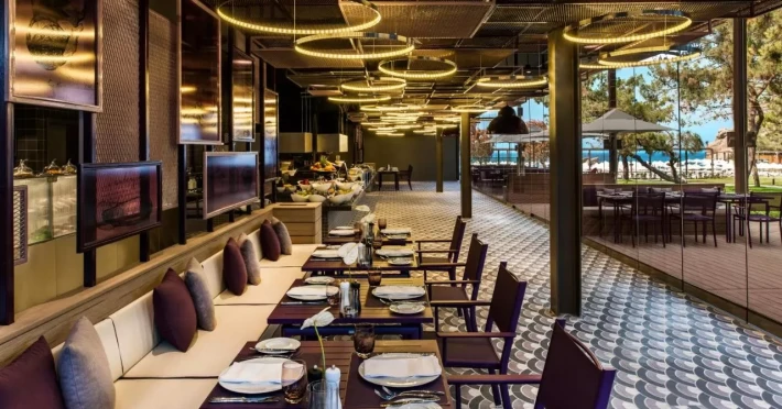 Hotelul are la dispozitia turistilor sai restaurante cu diferite specifice, braserie deschisa non-stop, patiserie, 2 piscine, 3 tobogane de apa, baruri, curatatorie si spalatorie, frizerie, Wi-Fi in lobby, gratuit, magazine, wellness-center, cinema in aer liber, cabinet medical, centru spa.