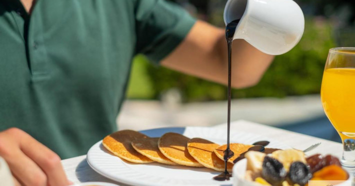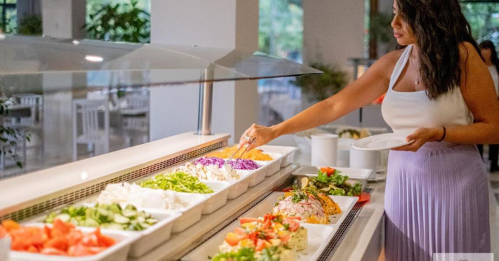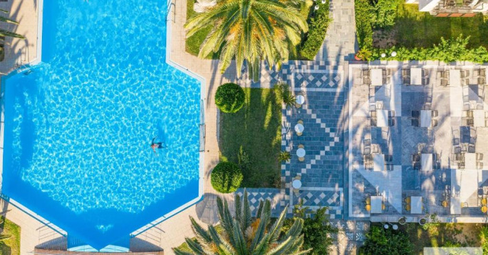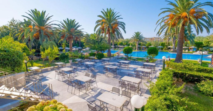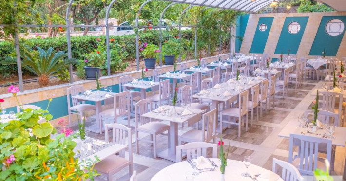 Restaurantul hotelului serveste un mic dejun tip bufet si cină cu specialităti grecesti. Oaspetii pot savura băuturi si mancăruri usoare, cum ar fi salate, la barul de la piscină.