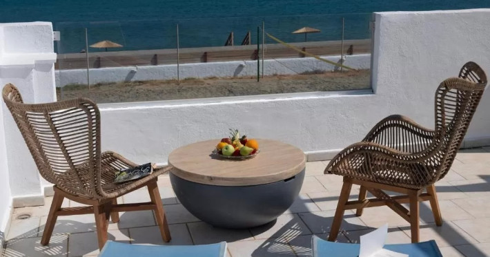 Sunt disponibile 70 camere. Unele camere au balcon cu vedere la mare, unde oaspeții pot admira apusul sau răsăritul soarelui. Camerele de la Maya Beach Hotel sunt dotate cu aer condiționat, Tv cu canale prin satelit și seif. În camere există baie cu cadă sau duș ce are în dotare foehn și articole de toaletă gratuite. Fiecare cameră dispune de cană pentru prepararea apei calde. Oaspeții pot solicita serviciul de room service pentru a servi masa sau diverse băuturi. Oaspeții au acces gratuit la serviciul Wi-fi în camere. Curățenia in cameră se face zilnic.