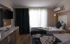 Unele camere au balcon cu vedere la mare, unde oaspeții pot admira apusul sau răsăritul soarelui. Camerele de la Maya World Beach sunt dotate cu aer condiționat, Tv cu canale prin satelit și seif. În camere există baie cu duș prevăzută cu foehn. Fiecare cameră dispune de minibar. Oaspeții au acces la serviciul Wi-fi în camere contra cost. Curățenia in cameră se face zilnic. Proprietatea oferă camere pentru familie cu o suprafață mai mare și un număr mai mare de paturi față de cele standard. Se pot rezerva de asemenea camere pentru nefumători.