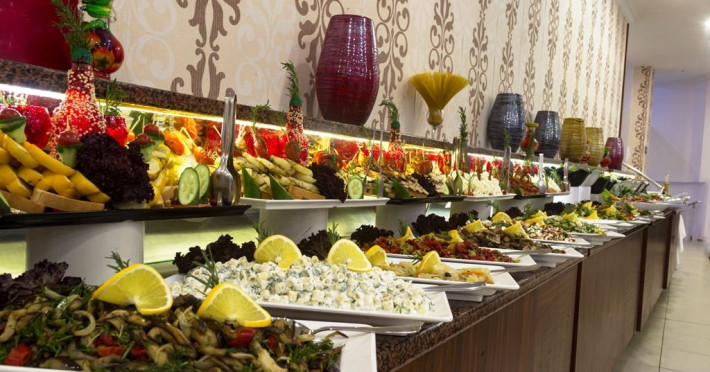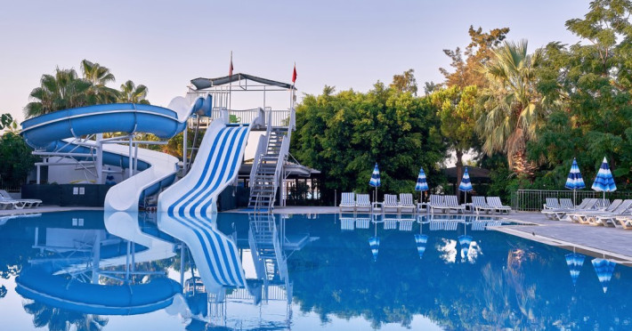 Facilitati hotel: Oaspetii pot beneficia de restaurant, baruri, piscina exterioara, sezlonguri si umbrele, centru spa, tenis de masa, volei, aerobic, darts, seri tematice, programe de animatie si divertisment.