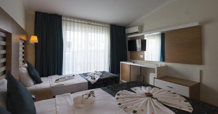 Localizare Hotelul este localizat in statiunea Alanya, la 85 km de aeroportul din Antalya si la 36 km de orasul Alanya. Facilitati hotel Pozitionat la malul marii, acest hotel ofera o zona privata de plaja, dotata cu sezlonguri si umbrele de soare. Restaurantul principal serveste o gama larga de preparate locale si internationale servite in stil bufet. Turistii au multiple activitati la hotel cum ar fi tenis, volei, aerobic, darts, polo pe apa. Facilitati camera Camerele hotelului sunt dotate modern cu uscator de par, aer conditionat, televizor si minibar.Localizare