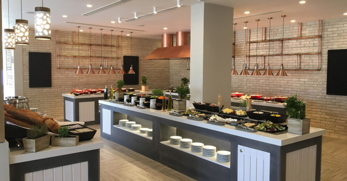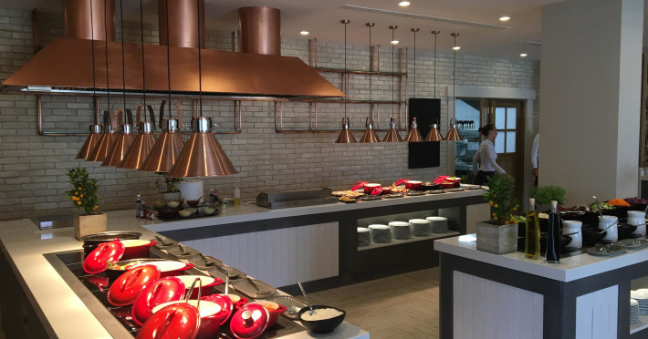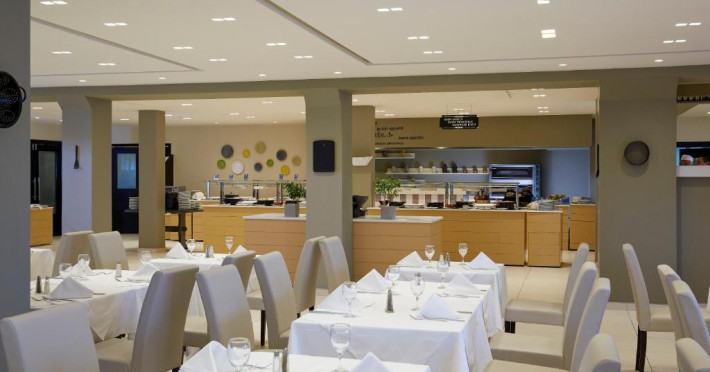 Există diverse locuri unde se poate lua masa: un bar și un lobby bar. Clienții sunt ospătați in restaurant (nefumători, zonă pentru fumători, bufet și aer condiționat). Locul de cazare oferă pentru masă demipensiune și regim all inclusive. Un mic dejun pentru cei ce se trezesc devreme și pentru cei ce se trezesc tarziu, pranzul și cina imbie cu o ofertă diversificată de bucate. La cerere pot fi pregătite mese fără gluten, feluri de mancare vegetariene, meniuri pentru copii și alimente bio. De asemenea, complexul pune la dispoziție gustări. O atracție deosebită este gătitul in fața musafirilor. Lista de băuturi cuprinde diverse băuturi alcoolice și nealcoolice ca mărci internaționale.