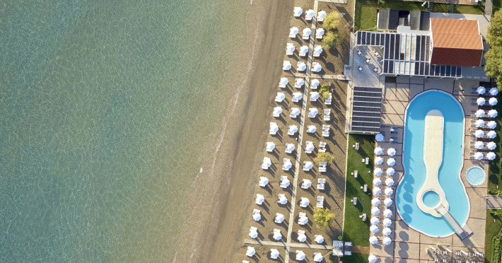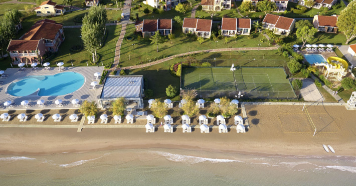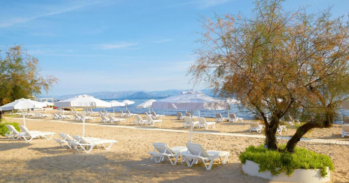 Complexul pentru turiști de la plajă, familii și cei indrăgostiți de natură, se află chiar pe malul mării, chiar in afara localității Lefkimmi, pană in centrul localității sunt cam 45 de km.