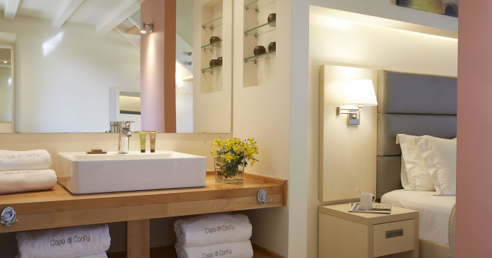 Aparatul de aer condiționat creează o atmosferă plăcută in camere. In majoritatea spațiilor de cazare clienții beneficiază de o vedere spre plajă de pe balcon sau de pe terasă. De asemenea, există un seif și un minibar contra cost. Mai sunt disponibile și un minifrigider și un aparat pentru cafea/ceai. Echiparea este completată de un telefon cu apelare directă, un televizor cu ecran plat cu canale prin satelit și WiFi (gratuit). In cameră se găsesc și papuci de casă. In băi se găsește un uscător de păr. De asemenea, stau la dispoziție camere adaptate pentru scaun cu rotile cu baie fără bariere. Complexul oferă camere de familie și camere de nefumători.