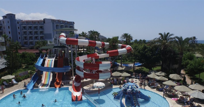 Facilitati hotel: hotelul dispune de 1 restaurant principal, 2 restaurante a la carte cu bucatarie turceasca si mediteraneana, baruri (Atrium Bar, Atrio Bar, Cin-Cin Bar, Bar Verde, Havuz Bar, Disko Bar), loc de joaca pentru copii, club pentru copii (4-12 ani), centru fitness si SPA, internet cafee, sala de conferinte, 3 piscine exterioare (212-420 mp), 1 piscina exterioara pentru copii (50 mp), 1 piscina interioara pentru copii (25 mp), aquapark, plaja privata.