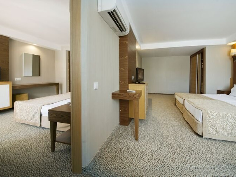 Facilitati hotel: Hotelul pune la dispozitia turistilor serviciu de spalatorie (contra cost), internet cafe (contra cost), restaurant, baruri, seif (contra cost), telefon, servicii medicale (contra cost), bowling (contra cost), billiard (contra cost), baby-sitter (contra cost), SPA center (contra cost), room service, sala de jocuri, sporturi nautice (contra cost), internet in lobby, magazine, salon de infrumusetare, plaja privata (nisipoasa), sezlongurile si umbrelutele la plaja/piscina, piscina pentru copii, loc de joaca, darts, tenis de masa, program pentru copii, mini-club (varste cuprinse intre 04-12 ani), Aqua park cu 3 tobogane, piscina interioara pentru copii, animatie, centru fitness, baie turceasca (contra cost), sauna (contra cost), aerobic, piscina exterioara, piscina interioara, jacuzzi, baschet, volei pe plaja, muzica live.