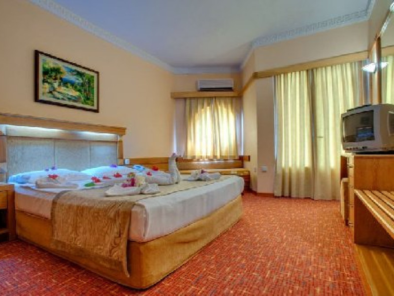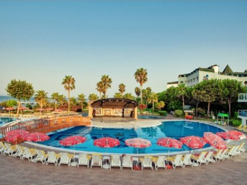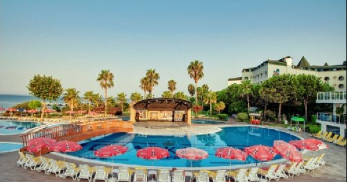 Deschis in anul 1992, renovat in 2012 cu o suprafata totala de 30.000 mp, hotelul dispune de 470 camere, distribuite astfel: 447 camere standard (suprafata 26-28 mp, capacitate maxima 3 pax) 2 camere pentru persoanele cu dizabilitati (suprafata 26-28 mp); 21 camere family (suprafata 36-40 mp, capacitate maxima 4+2 pax) Localizare: pe plaja, la 10 km de orasul Alanya si la 110 km de aeroport. Dotari camere: telefon, televizor, minibar, seif, aer conditionat centralizat, uscator de par, balcon/terasa, mocheta. Facilitati hotel: restaurant principal, 2 restaurante a la carte (turcesc, pescaresc), 4 baruri, piscine exterioare, 3 tobogane, piscina pentru copii, piscina interioara, sauna, baie turceasca, jacuzzi, masaje, bai cu namol, baie cu aburi, centru de infrumusetare, centru fitness, baschet, tenis, volei pe plaja, tenis de masa, aerobic, mini-fotbal, bowling, biliard, sala de jocuri, darts, amfiteatru, programe de animatie, mini club pentru copii 4-12 ani, magazine, sali de conferinte. Servicii cu plata: acces internet, seif in camera, masaje, spalatorie, servicii medicale, babysitting, inchirieri masini, doctor, sporturile de apa motorizate, room service, discoteca, freshuri, cafea turceasca. Plaja: cu nisip si pietris. Sezlongurile si umbrelele sunt gratuite. Alte informatii: - animalele de companie nu sunt acceptate in hotel; - in restaurante tinuta este obligatorie. Hotelul isi rezerva dreptul de a modifica conceptul in timpul sezonului fara a anunta in prealabil aceste modificari.Datorita dinamicitatii domeniului disponibilitatea ofertelor se modifica de la un moment la altul. De aceea ofertele sunt valabile in limita locurilor disponibile. Agentia nu este responsabila pentru eventualele neconcordante care pot aparea intre informatiile privind tarifele si alte detalii din site si informatiile primite in agentie. In aceste cazuri vor avea prioritate, intotdeauna, informatiile primite in agentie.