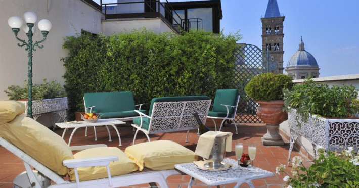 Hotelul de 4 stele Mecenate Palace este situat in centrul Romei si oferă vedere la Bazilica Santa Maria Maggiore. Restaurantul cu grădină de pe acoperis si barul Sky oferă vedere la acoperisurile Romei.