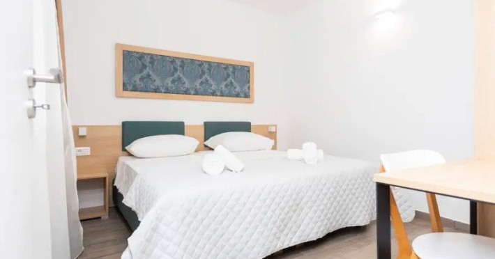 Dotari apartamente: bucatarie complet echipata cu vesela, aparat de cafea cu filtru si cuptor cu microunde, un dormitor, un living cu canapea ce poate fi folosita ca pat suplimentar, o baie cu dus si o terasa; aer conditionat in fiecare camera, lenjerie de pat si prosoape, conexiune telefonica directa, uscator de par, SAT-TV, patut pentru copii (la cerere, contra cost), animale de companie (contra cost)