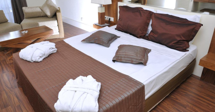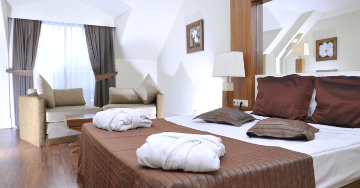 Hotelul dispune de un numar total de 228 camere, 213 camere standard (35 mp; 2+2pax), 12 camere Junior suit (50 mp; doua camere cu usa comunicanta, max.2+3 pers), 3 camere pentru persoane cu dizabilitati. Toate camerele au balcon sau balcon French cu vedere la munte sau piscina, baie privata cu cada, dus si uscator de par, aer conditionat, telefon direct, internet, mini-bar (alimentat saptamanal cu bauturi racoritoare), seif (contra cost), satelit TV si canale de muzica, mocheta.