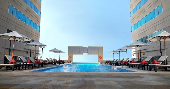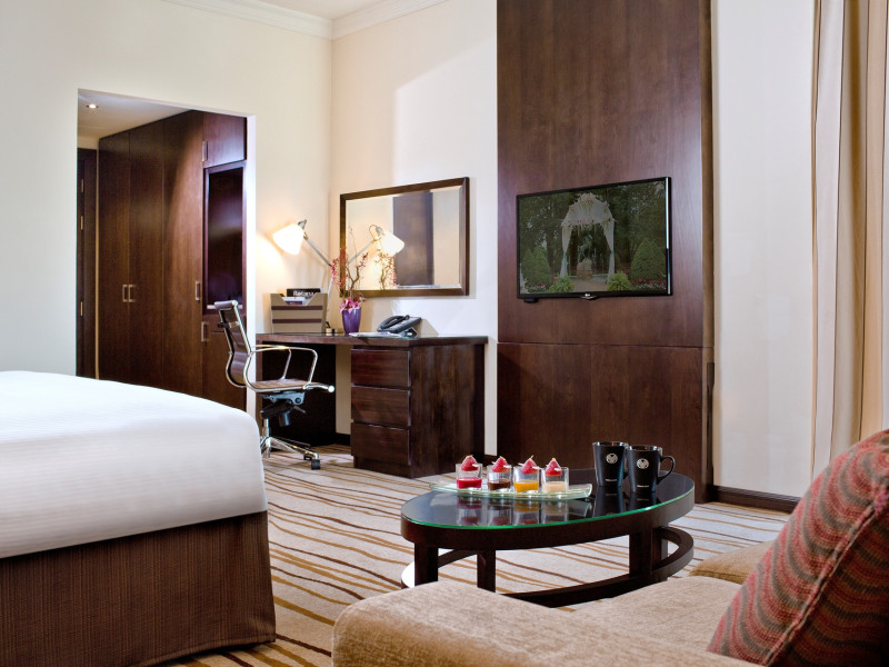 Around 5,7 km from a beach lies the aparthotel Media Rotana Dubai. The nearest bars and restaurants are located directly next to the building. The city centre is around 15 km away. A supermarket and other shops you reach after around 500 m. There is Around 5,7 km from a beach lies the aparthotel Media Rotana Dubai. The nearest bars and restaurants are located directly next to the building. The city centre is around 15 km away. A supermarket and other shops you reach after around 500 m. There is a shuttle between the hotel and the airport (for a fee). Nearby there is a disco which offers entertainment in high season. The beach is Nudist bathing is allowed here. Here, there are sun loungers, sun umbrellas and beach towels available. To reach the beach a shuttle is provided. The air-conditioned hotel has a 24h reception (check-in is possible around the clock), a lobby, Wi-Fi, internet access, a lift, a shop, cash machine, a hairdresser, a jacuzzi, showers and changing rooms, a first aid kit as well as parking spaces. In the outdoor area of the property you will find a supervised pool, where sun loungers, sun umbrellas and pool towels are available for free. Furthermore, you can relax outdoors on a terrace. Inside the hotel you can use a heated indoor pool. You can store your valuables in the safe, and your luggage in the hotels storage room. For very young guests, cots can also be provided. There is also a laundry service available at an additional cost to customers. Ironing equipment can be rented at the hotel for a fee. For your comfort, in addition to the concierge service the hotel page will ensure you are looked after. If necessary, you can contact the medical centre at any time (for a fee). Guests at the accommodation can get a wake-up call from the hotel personnel. For conventions and other business meetings, the hotel offers a business centre as well as EXTRA_FEE conference rooms with scanner as well as a catering service. If you want to explore the holiday region, you can use the car rental service close to the hotel (extra fee). At the reception, tickets are offered for excursions in the area. For guests on their honeymoon, the hotel has special offers such as special honeymoon packages. In your hotel, a lot of focus is placed on sustainability. This includes among others a central room air-conditioning. The hotel requires that all guests pay a deposit upon arrival. Due to its barrier-free facilities , such as separate, barrier-free entrances, wheelchair accessible rooms and a wheelchair accessible lift, the hotel is also suitable for wheelchair users. Catering As catering services the hotel offers all-inclusive, half board, full board and breakfast only. Breakfast is offered American, continental or from the buffet. Lunch and dinner are also served from the buffet. For the meals, there are a buffet restaurant and 2 bars. Appropriate clothing is required for lunch and dinner. Distances Fun park: approximately at 37 km Airport: approximately at 24 km Aqua park: approximately at 6,9 km Bus stop: approximately at 500 m Cinema: approximately at 5 km Taxi rank: approximately at 3 m Distance to the sea: approximately at 5,7 km Theatre: approximately at 4 km Train station: approximately at 5,6 km Nearest dentist: approximately at 5 km Pharmacy: approximately at 500 m Hospital: approximately at 500 m Dialysis station: approximately at 500 m Golf course: approximately at 2,5 km Nearest bank: approximately at 1 m Nearest public transport: approximately at 500 m Nearest lake: approximately at 1,3 km Business center: approximately at 1 m Climbing park: approximately at 6,2 km Tennis court: approximately at 11 km Riding school: approximately at 23 km Nearest riding route: approximately at 24 km Sailing school: approximately at 4 km Dive spot: approximately at 6 km Dive shop: approximately at 17 km Wave surfing school: approximately at 10 km Snowboard slope: approximately at 3 km Cross-country ski trail: approximately at 3 km Sports amp; Leisure To keep your fitness up on holiday, there is a gym for guests to use. For cyclists there is a storage room. A sauna awaits you in the spa area. The hotel also offers massages (extra fee) and beauty treatments (extra fee). Spend some healthy and relaxing hours with heat therapy. Your little ones are in good hands with the hotels babysitter service (extra fee) . In terms of adult entertainment, live music is presented on certain days. Additional information The accommodation has a total of 537 rooms.Datorita dinamicitatii domeniului disponibilitatea ofertelor se modifica de la un moment la altul. De aceea ofertele sunt valabile in limita locurilor disponibile. Agentia nu este responsabila pentru eventualele neconcordante care pot aparea intre informatiile privind tarifele si alte detalii din site si informatiile primite in agentie. In aceste cazuri vor avea prioritate, intotdeauna, informatiile primite in agentie.