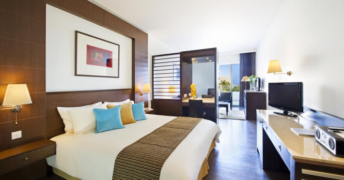 Hotelul Mediterranean Beach, un hotel superior de 4 stele din Limassol, Cipru, oferă o experiență de lux ce celebrează ospitalitatea insulară. Înconjurat de grădini și situat în apropierea plajei cu nisip, acesta se bucură de o locație excelentă cu vedere la golful Limassol. Cu facilități excelente și programe de animație ce includ muzică live, precum și restaurante tematice ce satisfac toate gusturile, este un refugiu perfect pentru o evadare relaxantă.Facilitati camere