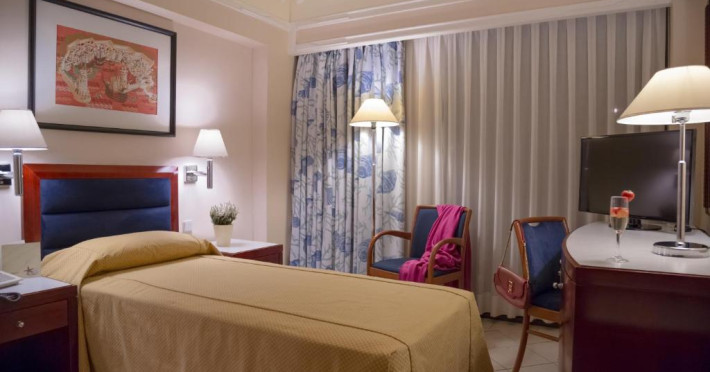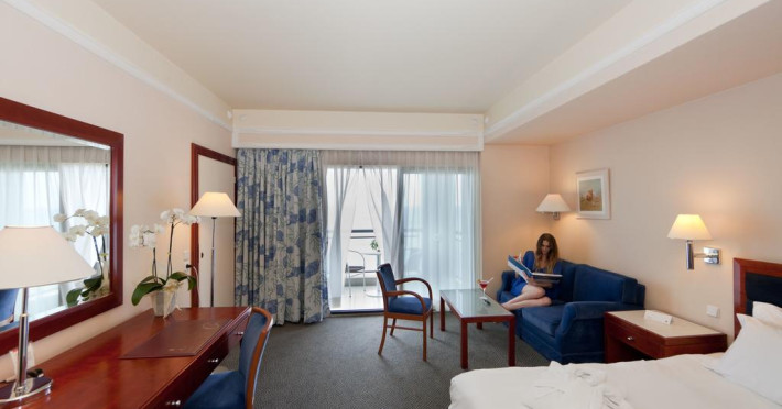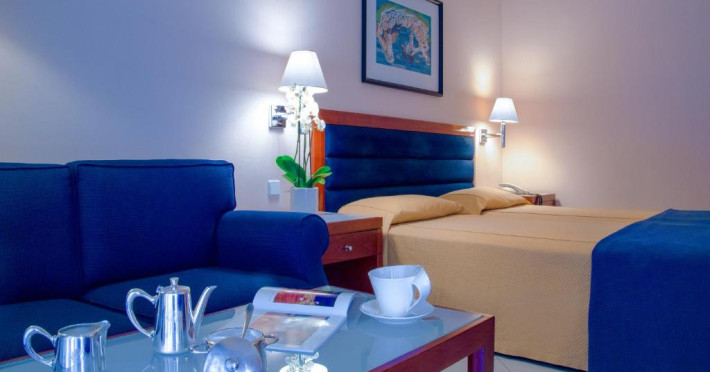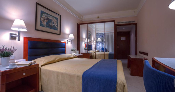 În camere există baie cu cadă sau duș ce are în dotare foehn și articole de toaletă gratuite. Camerele confortabile de la Mediterranean au pardoseală de gresie/ marmură, aer condiționat, Tv cu canale prin satelit și seif. Un minibar și o mașină pentru preparare cafea sau ceai se află în fiecare cameră. Oaspeții pot solicita serviciul de room service pentru a servi masa sau diverse băuturi. Unele camere au balcon cu vedere la mare sau la grădină. Oaspeții au acces gratuit la serviciul Wi-fi în camere. Curățenia in cameră se face zilnic. Toate camerele spațioase de la Mediterranean au canapea în living, ceea ce oferă un plus de confort. Proprietatea oferă camere pentru nefumători.