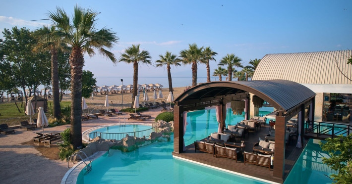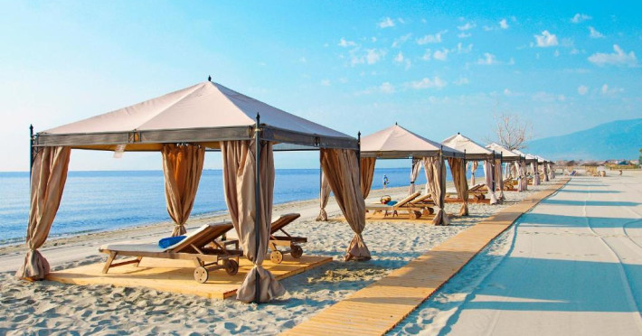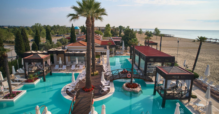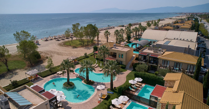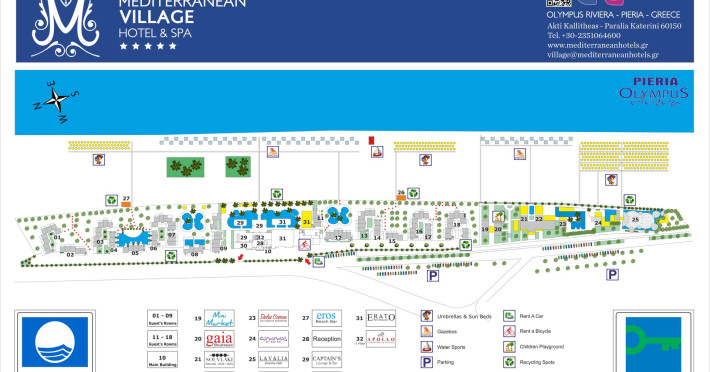 Built on the footsteps of the legendary Mountain Olympus and situated on the Olympus Riviera beach, Mediterranean Village Hotel & Spa, an ultramodern five star hotel exactly by the sea, offers a combination of high quality services, excellent accommodation and a great hospitality. The hotel is situated just 700m of the town of Paralia and at 7km distance from the city of Katerini.In short distances from the hotel (between 12 – 30 km at the most) historical & cultural areas like Pydna, Dion, Platamon Castle, Makrigialos etc, awaits you to pay a visit, as well as monasteries & traditional settlements, Mt Olympus refuges and breathtaking natural environment as Enipeas Canyon, Agia Kori Stream, Vrondu Caves, Orlias Stream and many others.In 78 km distance is the city of Thessaloniki, the second-largest city of Greece, always alive, full of cultural sights, shopping areas, modern and tasteful restaurants, exceptional bars and night hot spots. In a short distance from the city center (85 km from our hotel) is the “Macedonia” International Airport of Thessaloniki, ready to accommodate your domestic or international flight destination preference.No doubt, Olympus Riviera is an area that covers the interests of even the most demanding visitor, endowed by God and Nature that combines harmonically mountain and sea as well.Built on the footsteps of the legendary Mountain Olympus and situated on the Olympus Riviera beach, Mediterranean Village Hotel & Spa, an ultramodern five star hotel exactly by the sea, offers a combination of high quality services, excellent accommodation and a great hospitality. The hotel is situated just 700m of the town of Paralia and at 7km distance from the city of Katerini.In short distances from the hotel (between 12 – 30 km at the most) historical & cultural areas like Pydna, Dion, Platamon Castle, Makrigialos etc, awaits you to pay a visit, as well as monasteries & traditional settlements, Mt Olympus refuges and breathtaking natural environment as Enipeas Canyon, Agia Kori Stream, Vrondu Caves, Orlias Stream and many others.In 78 km distance is the city of Thessaloniki, the second-largest city of Greece, always alive, full of cultural sights, shopping areas, modern and tasteful restaurants, exceptional bars and night hot spots. In a short distance from the city center (85 km from our hotel) is the “Macedonia” International Airport of Thessaloniki, ready to accommodate your domestic or international flight destination preference.No doubt, Olympus Riviera is an area that covers the interests of even the most demanding visitor, endowed by God and Nature that combines harmonically mountain and sea as well.