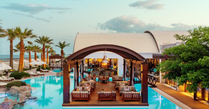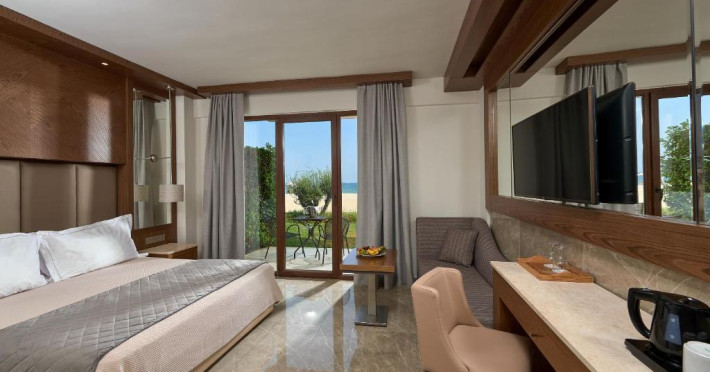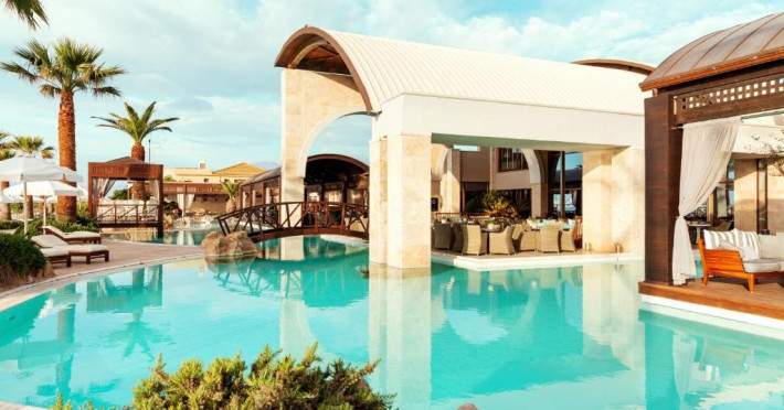 Oaspeții se pot bucura de două piscine exterioare cu vedere la Marea Egee, un centru spa complet echipat și un restaurant principal cu specific mediteranean și internațional. Camerele sunt decorate in nuanțe calde și sunt dotate cu balcoane spațioase, majoritatea oferind panorame spectaculoase spre mare.