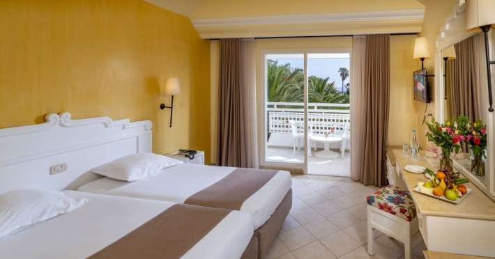 Toate camerele hotelului sunt dotate cu balcon sau terasa mobilata, spațiu de cameră zonat, aer condiționat, TV, minibar (la cerere, USD), cadă/ duș, săpun într-un pachet individual.