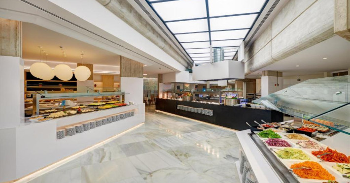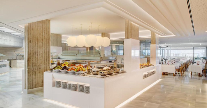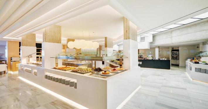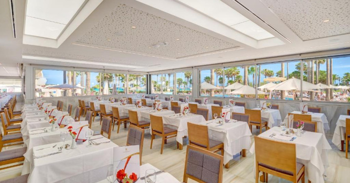 Restaurantul servește un mic dejun tip bufet și cina, are o secțiune pentru vegetarieni și solicită la cină o ținută vestimentară formală, cand bărbații trebuie să poarte pantaloni lungi. De asemenea, se pregătesc mancăruri mallorcane, italiene și japoneze. In jurul piscinelor sunt mai multe baruri și cafenele și se oferă și divertisment.