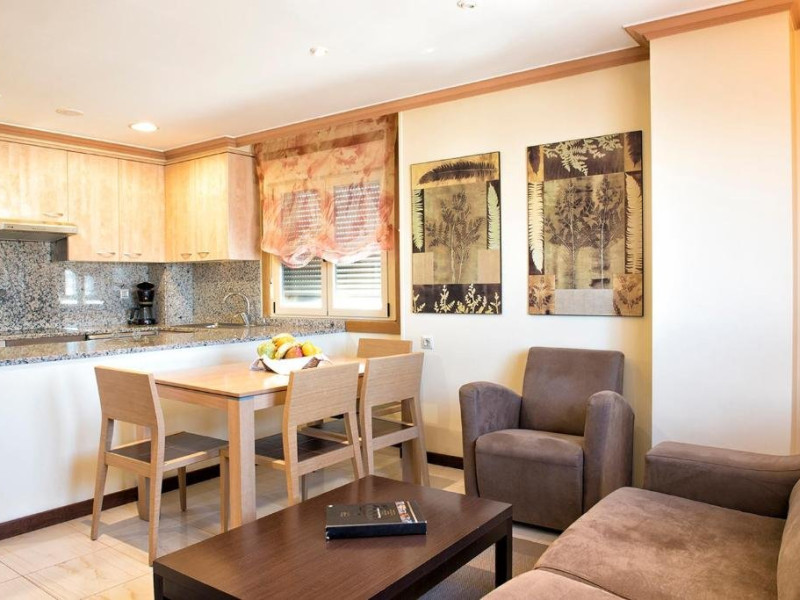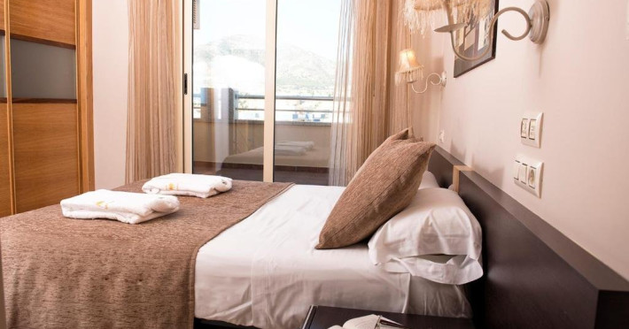 Dotari camere: Hotelul dispune de apartamente cu o capacitate de pana la 4 persoane, dotate cu: terasa, baie cu dus, uscator de par si articole de toaleta gratuite, o bucatarie complet utilata, masina de spalat, canapea, living, TV, fier si masa de calcat, telefon.
