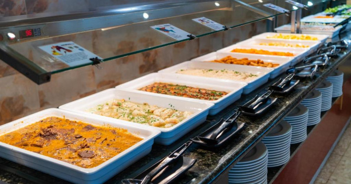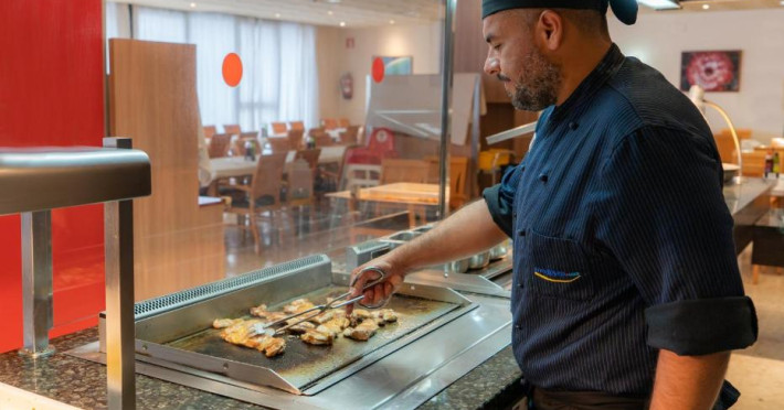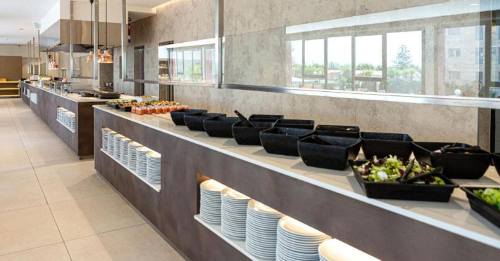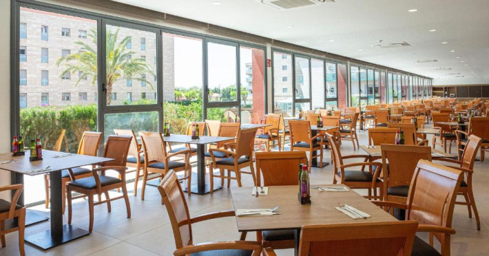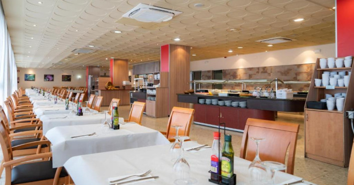 Bufetul-restaurant de la Medplaya Santa Monica servește mancăruri spaniole și internaționale. Este disponibil și un distribuitor automat de gustări.