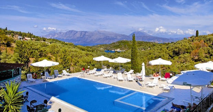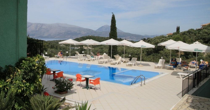 Situat la marginea satului Katomeri, la 18 minute de mers pe jos de plajă, hotelul Meganisi oferă acomodații cu aer condiționat care se deschid spre balcon. Este un hotel de familie confortabil și ospitalier, într-un cadru fericit, care oferă o piscină și un restaurant. Unele camere au vedere la plantațiile de măslini la Golful Atherinos.