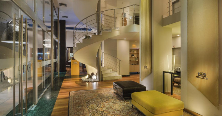 Această proprietate de 5 stele se află în Heraklion (Creta) și oferă unități de cazare cu aer condiționat și o piscină în aer liber, cu șezlonguri și umbrele de soare. Facilitățile de la Gdm Megaron includ sală de fitness și business center. Proprietatea are, de asemenea, servicii de recepție cu program non - stop și închirieri auto. Se oferă acces gratuit la internet Wi-fi în spațiile publice. Parcarea este disponibilă la proprietate gratuit.