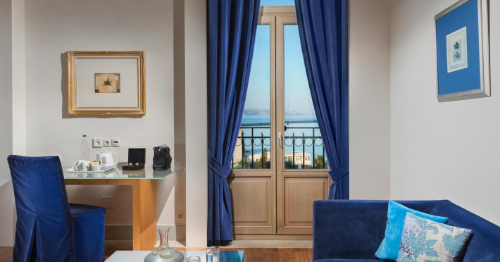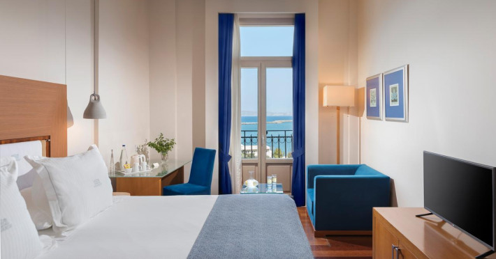 Sunt disponibile 58 camere. În camere există baie cu cadă sau duș, foehn, articole de toaletă gratuite, precum și halate de baie și papuci. Fiecare cameră dispune de minibar și cană-fierbător. Oaspeții pot solicita serviciul de room service pentru a servi masa sau diverse băuturi. Camerele au balcon cu vedere la mare sau la oraș, unde oaspeții pot admira apusul sau răsăritul soarelui. Camerele luminoase de la Gdm Megaron sunt dotate cu parchet, aer condiționat, Tv cu canale prin satelit și seif. Oaspeții au acces gratuit la serviciul Wi-fi în camere. Curățenia in cameră se face zilnic. Anumite camere au zonă de relaxare și cadă cu hidromasaj care asigură un plus de confort și răsfăț.