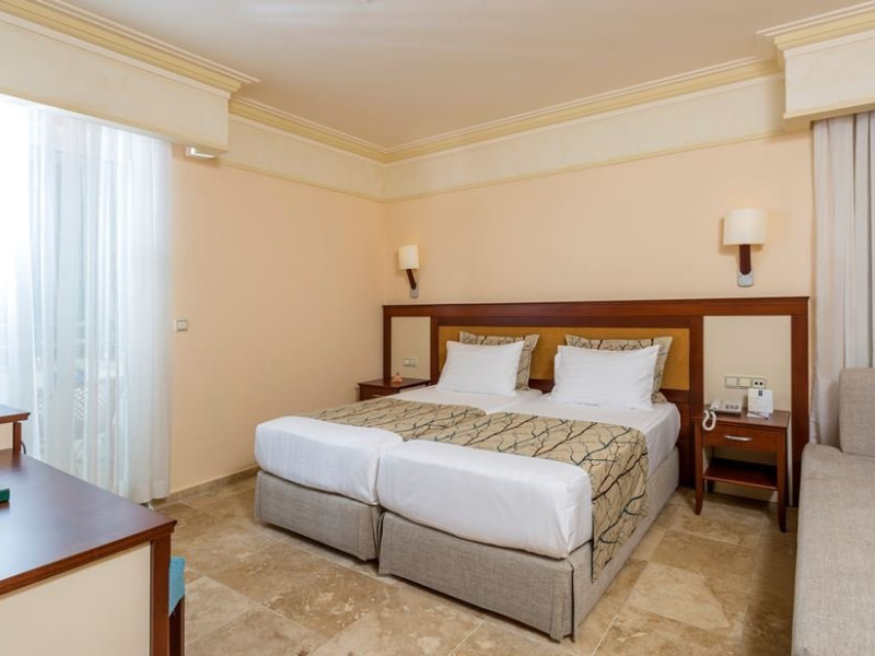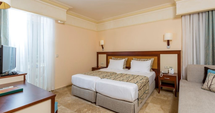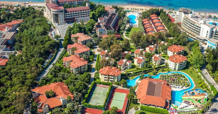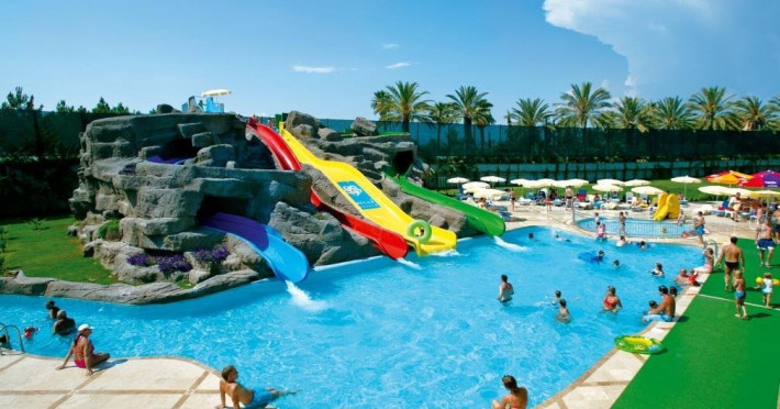 Facilitati hotel: Oaspetii pot beneficia de restaurant principal, restaurant A la Carte, baruri, piscine exterioare, aqua park, sezlonguri si umbrele, centru fitness, centru spa, teren de tenis, volei, basket, darts, boccia, tenis de masa, billiard, amfiteatru, programe de animatie si divertisment, muzica live, piscina pentru copii, loc de joaca, tobogane.