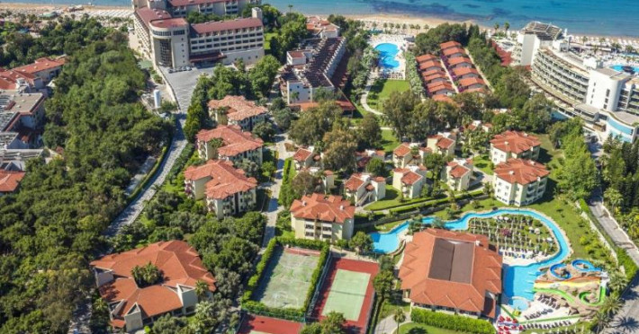 Hotelul oferă un restaurant principal, două restaurante a la carte, trei baruri, două piscine exterioare și un aquapark cu tobogane (funcțional între 15.05 și 15.10). Alte facilități includ o sală TV, cabinet medical (cu program de două ore pe zi, cu excepția zilei de duminică), coafor în cadrul Melas Resort, trei magazine, servicii de spălătorie, schimb valutar, rent-a-car, parcare și Wi-Fi gratuit la recepție. Activitățile gratuite includ baie turcească, saună, fitness, aerobic, aqua-aerobic, squash, volei de plajă, baschet, mini-fotbal, biliard, tenis de masă, darts, închiriere rachete și mingi de tenis, wind surfing (cu licență), sporturi acvatice fără motor pe plajă, Wi-Fi, programe de animație și acces la discotecă (în Melas Resort până la 02:00). Serviciile contra cost includ masaj, peeling, internet-cafe, salon de jocuri, nocturna terenului de tenis și sporturi acvatice cu motor pe plajă. Facilitățile pentru copii includ un bufet, două piscine, loc de joacă, tobogan, mini-club (4-12 ani), junior-club (13-16 ani) și servicii de baby-sitter (contra cost).