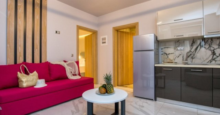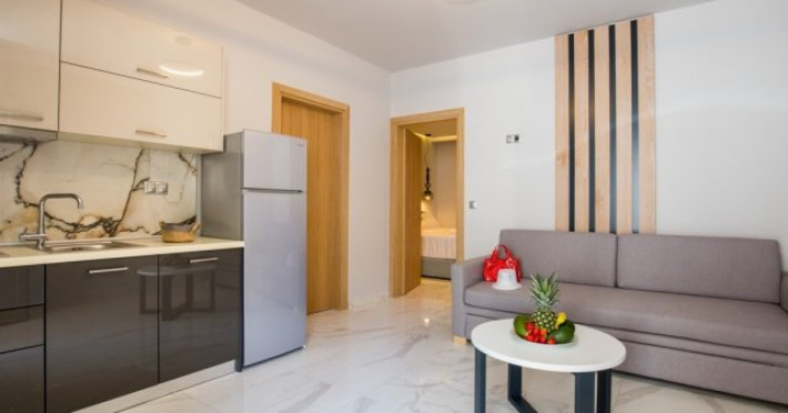 Facilitati camere: Toate apartamentele sunt moderne si echipate cu: AC, TV, WiFi, frigider, seif, uscator de par, chicineta, baie cu dus si balcon cu vedere la mare.
