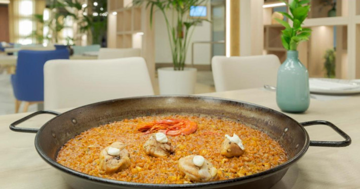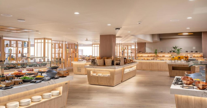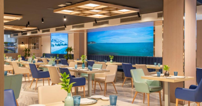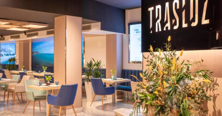 Restaurantul Trasluz al hotelului este specializat in preparate din orez si peste proaspăt. De asemenea, există un snack bar langă piscină și un lounge bar elegant.