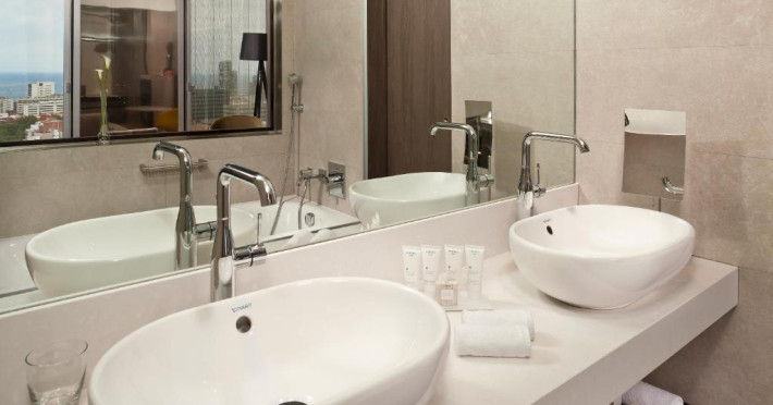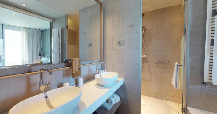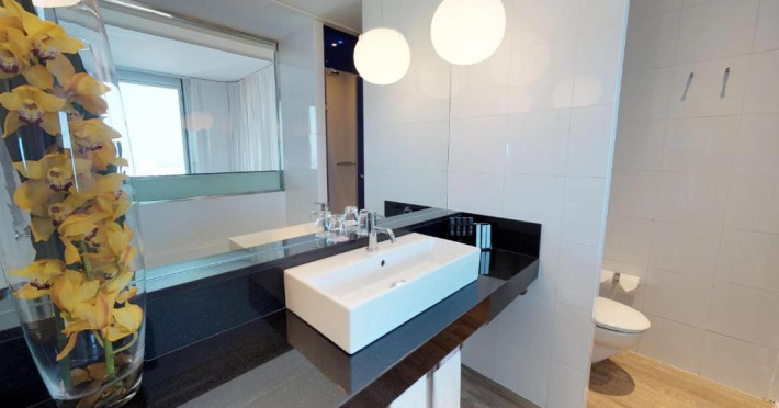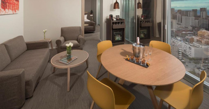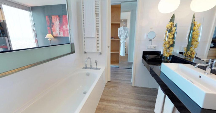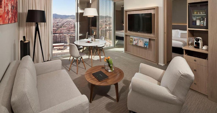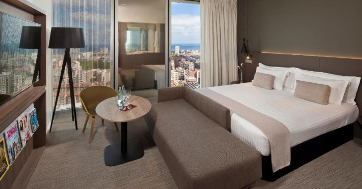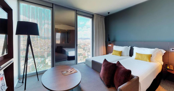 Una dintre cele mai inalte clădiri din Barcelona gazduieste hotelul Melia Barcelona Sky. Acesta oferă vederi spectaculoase asupra orașului și mării. Melia Barcelona Sky are o piscină in aer liber. La Serena SPA Wellness sunt disponibile tratamente și se oferă acces gratuit la sala de sport. Fiecare cameră spațioasă de la Melia Barcelona Sky include un TV cu plasmă de 32 inch și oferă vedere la oraș. Băile elegante sunt dotate cu duș cu efect de ploaie. Vă puteți bucura de un cocktail la etajul 24, la terasa panoramică Skyline 24, care oferă vedere la oraș.
