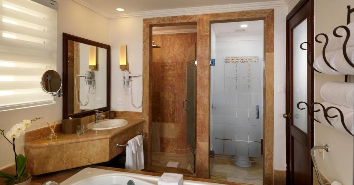 În camere există baie cu cadă sau duș prevăzută cu foehn. Camerele luminoase de la Melia Caribe Beach Resort sunt dotate cu aer condiționat și Tv cu canale prin satelit. Curățenia in cameră se face zilnic.