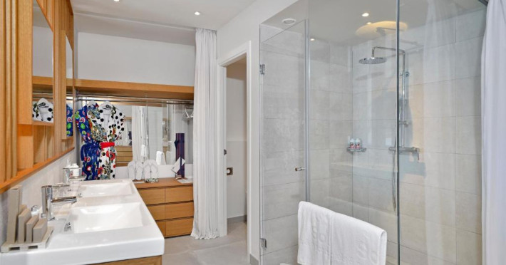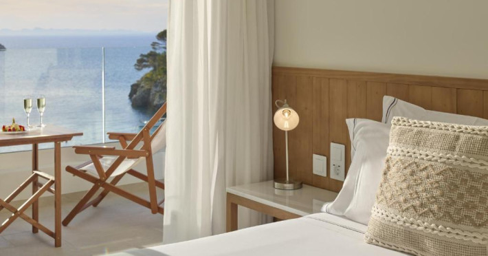 Camerele luminoase, frumoase, cu aer condiționat de la Melia Ibiza - Adults Only au o terasă mobilată, cu vedere laterală sau completă la Marea Mediterană. De asemenea, acestea includ o baie privată.
