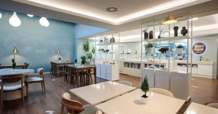 Restaurantul nou-nouț servește mic dejun internațional și oferă un serviciu à la carte și un fel de mancare al zilei, bazat pe conceptul Bistrô & Tapas.
