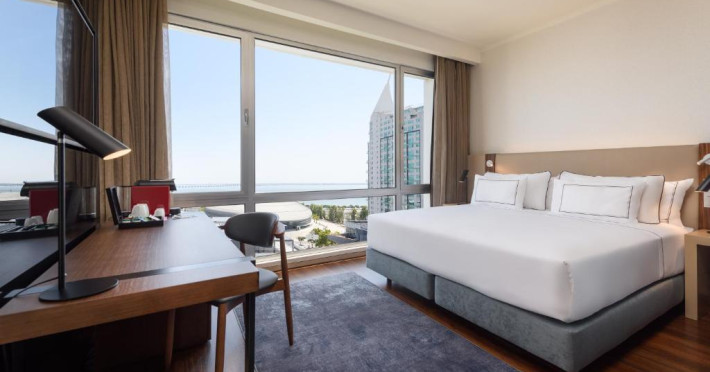 Camerele Hotelului Melia Lisboa Oriente sunt luminoase și aerisite și au TV prin satelit, zonă de relaxare și aparat de ceai/cafea. Acestea au vedere la fostul sit EXPO 98 și la numeroasele sale clădiri inovatoare. Unele camere au vedere și spre apă.