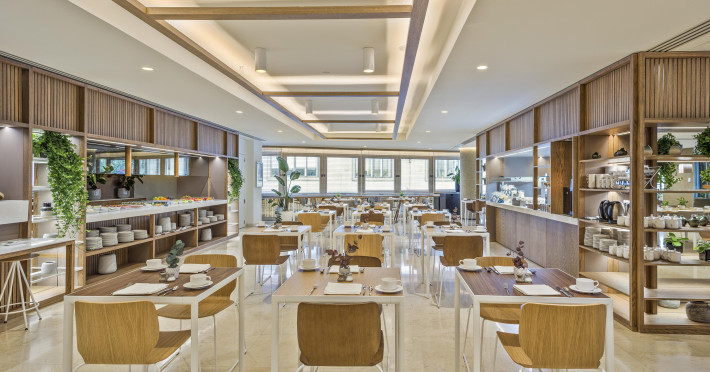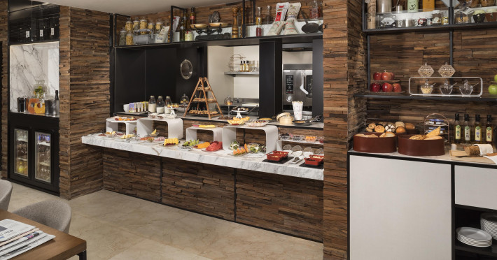 Restaurantul lor Mosaico și Barul Bribone: Ca un mozaic, restaurantul creează o imagine a aromelor irezistibile cu cele mai bune rețete din fiecare tradiție gastronomică mediteraneană, iar zona de bar servește gustări și băuturi ușoare, dar sofisticate. De asemenea, oaspeții se pot bucura de un mic dejun tip bufet consistent. Cafeaua gratuită este oferită dimineața devreme, intre orele 05:00 și 07:00. Există, de asemenea, un bar integrat in recepție și un room service 24 de ore pe zi.