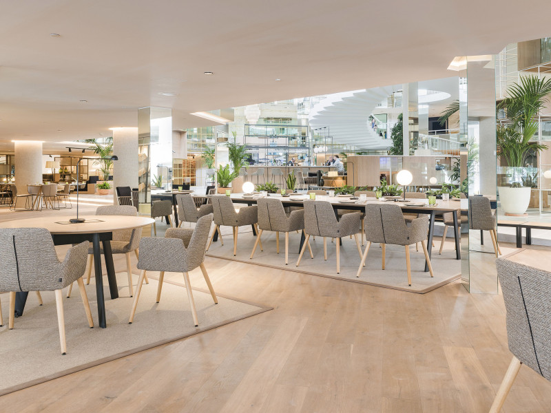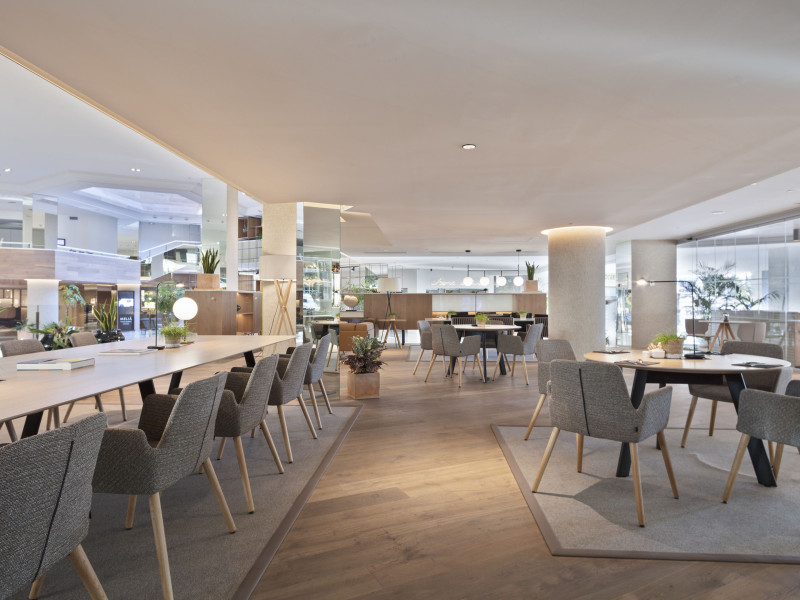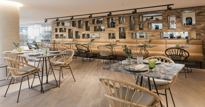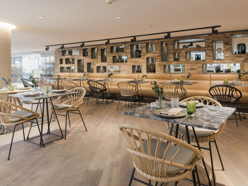 Locurile unde se poate lua masa cuprind o sală de mese, o sală pentru micul dejun, o cafenea și un bar. Un restaurant pentru nefumători cu zonă pentru fumători contribuie la o stare fizică de bine. Hotelul oferă pentru masă pachete de servicii cu mic dejun inclus și demipensiune. Un bufet bogat la micul dejun garantează o zi bună de dimineață. La amiază și seara se poate alege intre mese de tip bufet, meniu fix și à la carte. La cerere pot fi pregătite feluri de mancare dietetice și feluri de mancare vegetariene. O atracție deosebită este gătitul in fața musafirilor.