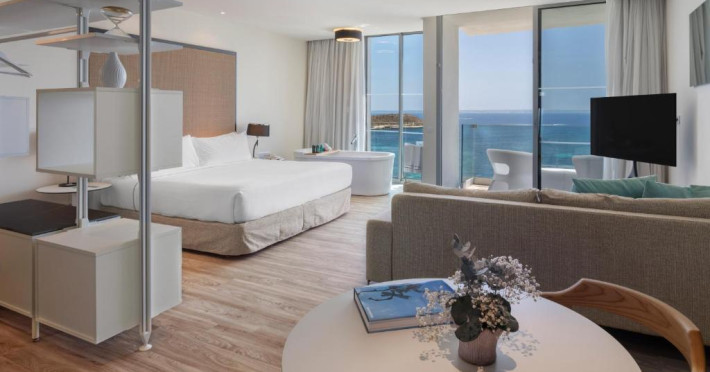 Camerele elegante beneficiază de vedere spre mare sau piscină, oferind un decor contemporan și dotări moderne. Oaspeții se pot bucura de două piscine exterioare, inclusiv una infinity cu vedere panoramică spre Mediterană, precum și de un restaurant principal cu preparate internaționale și specialități mediteraneene.