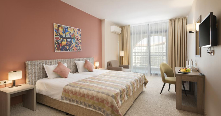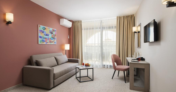 Toate camerele beneficiază de un design modern și dispun, ca și facilități, de: baie cu duș, minibar (contra cost), uscător de păr, aer condiționat, TV, telefon, seif (contra cost), balcon cu vedere la mare sau la parc.
