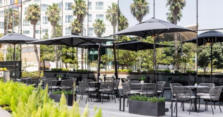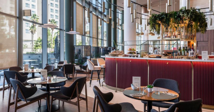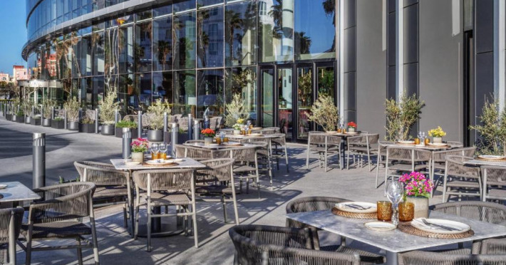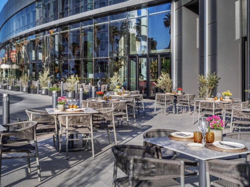 Restaurantul hotelului, Socarrat, este specializat in paella valenciană, precum și in bucătăria mediteraneană și internațională. Barul Oval are un meniu mic de gustări și băuturi pentru fiecare oră a zilei.